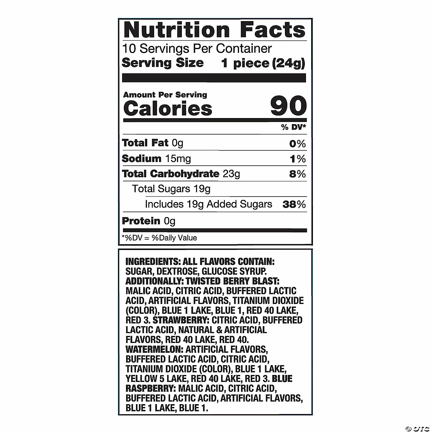 Regress into infancy with these cute candies with containers that are shaped like baby bottles. Each candy features delicious candy powder inside and are a great choice as classroom rewards, party favors and prizes for kids. You’ll never hear “stop treating me like a baby!” ever again with this yummy candy. Powder candy in a 1.1-oz. plastic bottle with a sucker top. (10 pcs. per unit) 3 1/2″ Candy is non-returnable. For more information, visit our “Return Policy” page located on our website.• Ingredient, nutrition, allergen and other product information are provided on our Web and Mobile sites for reference purpose only, without warranty or representation as to accuracy. Manufacturers adjust their labeling regularly and are solely responsible for the accuracy of the information. For general questions concerning these items, please contact our customer service at 800-228-0475.