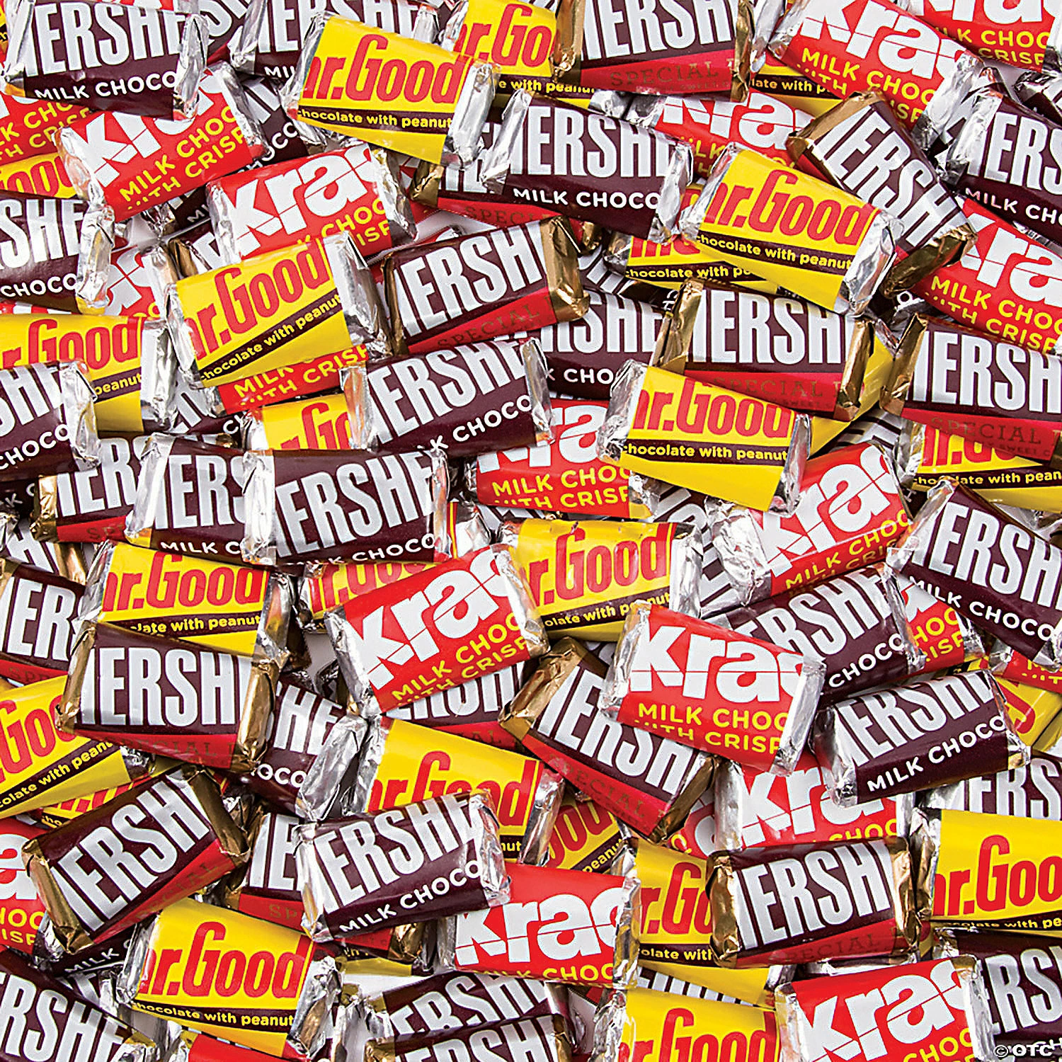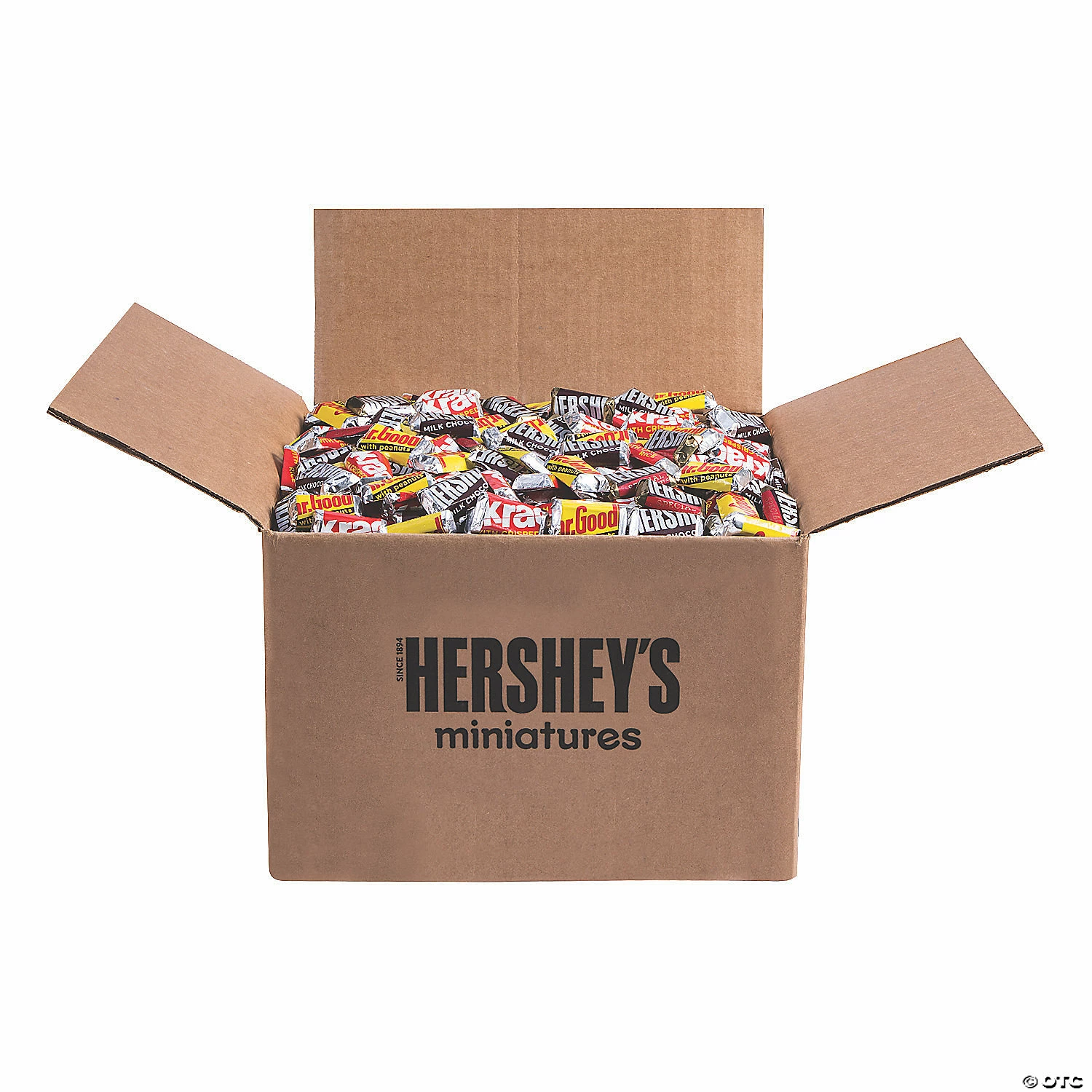 Take classic chocolate bars to new levels with this simply massive assortment of Hershey’s miniatures! Perfect for large gatherings, an office supply and so much more, these chocolates will definitely be loved by all. Buy them in bulk to make sure you never run out. Includes Hershey’s® Milk Chocolate, Special Dark® Chocolate, Krackel® and Mr. Goodbar®. Individually wrapped. (1250 pcs. per unit) Total wt., 25 lbs. © The Hershey Company• Candy is non-returnable. For more information, visit our “Return Policy” page located on our website.• Made in the USA. Important Country of Origin Information: For certain items sold by OTC on our Web or Mobile sites, country of origin information can change and what is displayed may not be accurate or consistent with manufacturer information. For up to date country of origin information, it is recommended that you rely on product packaging or other manufacturer information.• Ingredient, nutrition, allergen and other product information are provided on our Web and Mobile sites for reference purpose only, without warranty or representation as to accuracy. Manufacturers adjust their labeling regularly and are solely responsible for the accuracy of the information. For general questions concerning these items, please contact our customer service at 800-228-0475.