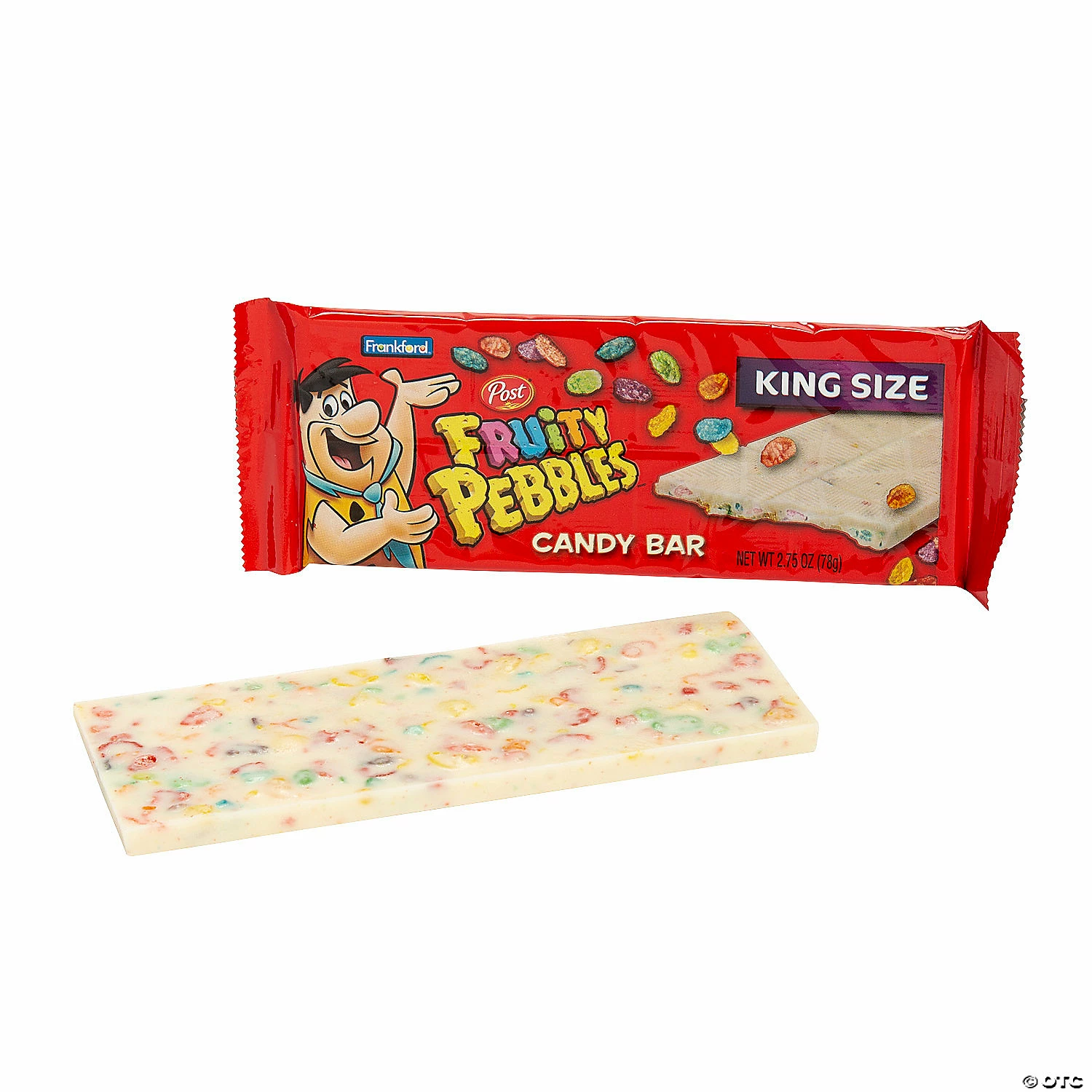 Take the sweet taste of Fruity Pebbles breakfast cereal on the go! Great for an everyday snack, trick-or-treat handout or office candy jar treat, these delights are sure to satisfy any sweet tooth. And with 18 candy bars in a pack, there’s plenty of yumminess to go around! (18 pcs. per unit) Total wt., 3 lb., 1.5 oz.• Candy is non-returnable. For more information, visit our “Return Policy” page located on our website.• Ingredient, nutrition, allergen and other product information are provided on our Web and Mobile sites for reference purpose only, without warranty or representation as to accuracy. Manufacturers adjust their labeling regularly and are solely responsible for the accuracy of the information. For general questions concerning these items, please contact our customer service at 800-228-0475.