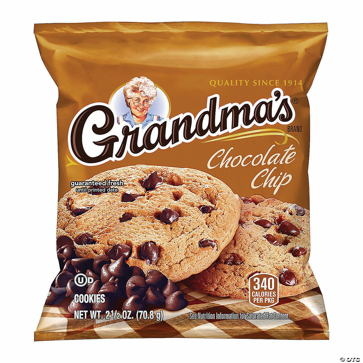Sink your teeth into the rich, chocolaty flavor of these Grandma’s Big Chocolate Chip Cookies and you’ll taste the homemade feel. With 2 cookies per pack, and 60 packs per box, there are plenty of delicious chocolate chip cookies to enjoy. Stock your pantry at home, a vending machine at the office, or the breakroom with these soft, chewy cookies. Grandma’s Big Chocolate Chip Cookies are great for a packed lunch, and are just as mouthwateringly delicious any time of the day. Edibles are non-returnable. For more information, visit our “Return Policy” page located on our website.Special Shipping Information: This item ships separately from other items in your order. This item cannot ship to a P.O. Box. This item may be subject to additional processing days. ITEM IS NOT ELIGIBLE FOR EXPEDITED SHIPPING
