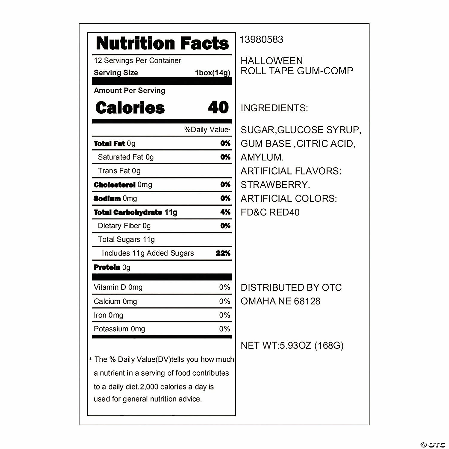 Your guests will be blowing bubbles of fun with these rolls of gum! Perfect for kids of all ages. Toss one into each goody bag along with other birthday party favors from this website. Strawberry flavor. Total wt., 5.93 oz. Fat-free. Plastic containers. (1 dozen per unit) Stickers, 1 1/4″ diam. Simple assembly required. © OTC• Candy is non-returnable. For more information, visit our “Return Policy” page located on our website.• Made in the USA. Important Country of Origin Information: For certain items sold by OTC on our Web or Mobile sites, country of origin information can change and what is displayed may not be accurate or consistent with manufacturer information. For up-to-date country of origin information, it is recommended that you rely on product packaging or other manufacturer information.• Ingredient, nutrition, allergen and other product information are provided on our Web and Mobile sites for reference purpose only, without warranty or representation as to accuracy. Manufacturers adjust their labeling regularly and are solely responsible for the accuracy of the information. For general questions concerning these items, please contact our customer service at 800-228-0475.