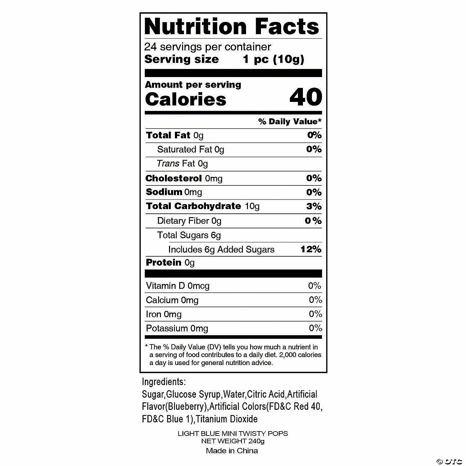These Mini Twisty Pops make a fun and fashionable addition to your candy buffet! This popular candy can also be used to make wedding reception centerpieces and makes a great addition to party favor bags. Comes in a variety of colors and flavors to sweeten up any soirée! Each 2″ blueberry-flavored sucker is on a 4″ plastic stick. Individually wrapped. (24 pcs. per unit) Fat-free. Total wt., 9 oz. Candy is non-returnable. For more information, visit our “Return Policy” page located on our website.