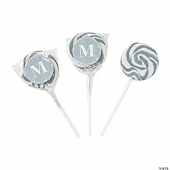 Make customized favors for your next party with personalized monogram swirl pops. Add your initial and send them home in gift bags. Great for birthday parties, graduation parties, even weddings! Pick your favorite shade and personalize with 1 character. Each 2″ pop is on a 4″ plastic stick. Cherry flavor. Individually wrapped. (24 pcs. per unit) Fat-free. Total wt., 14 oz. Simple assembly required to apply personalized sticker. ยฉ OTC