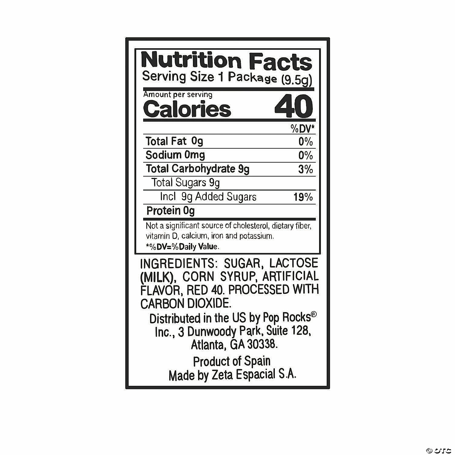 Add a pop of tart cherry to your sugar spree! Great for goody bags, holiday treats and trick-or-treat bags, these cherry pop rocks taste like fresh-picked cherries are exploding in your mouth! Pop some of these sweet party favors into goody bags at celebrations of any kind. Cherry flavor. (24 pkgs. per unit) Total wt., 8 oz. Fat-free.• Candy is non-returnable. For more information, visit our “Return Policy” page located on our website.• Ingredient, nutrition, allergen and other product information are provided on our Web and Mobile sites for reference purpose only, without warranty or representation as to accuracy. Manufacturers adjust their labeling regularly and are solely responsible for the accuracy of the information. For general questions concerning these items, please contact our customer service at 800-228-0475.