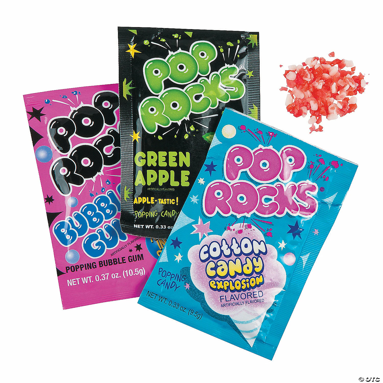 The classic popping candy in a variety of yummy flavors! This Pop Rocks® Assortment is perfect for party favor bags and sweet summertime giveaways! Add it to Easter candy, Halloween candy and so much more!• Cotton candy, green apple and bubble gum flavors. • (12 packs per unit)• Total wt., 4 oz.• Fat-free.• Gluten-free.• Candy is non-returnable. For more information, visit our “Return Policy” page located on our website.• Made in the USA. Important Country of Origin Information: For certain items sold by OTC on our Web or Mobile sites, country of origin information can change and what is displayed may not be accurate or consistent with manufacturer information. For up to date country of origin information, it is recommended that you rely on product packaging or other manufacturer information.• Ingredient, nutrition, allergen and other product information are provided on our Web and Mobile sites for reference purpose only, without warranty or representation as to accuracy. Manufacturers adjust their labeling regularly and are solely responsible for the accuracy of the information. For general questions concerning these items, please contact our customer service at 800-228-0475.