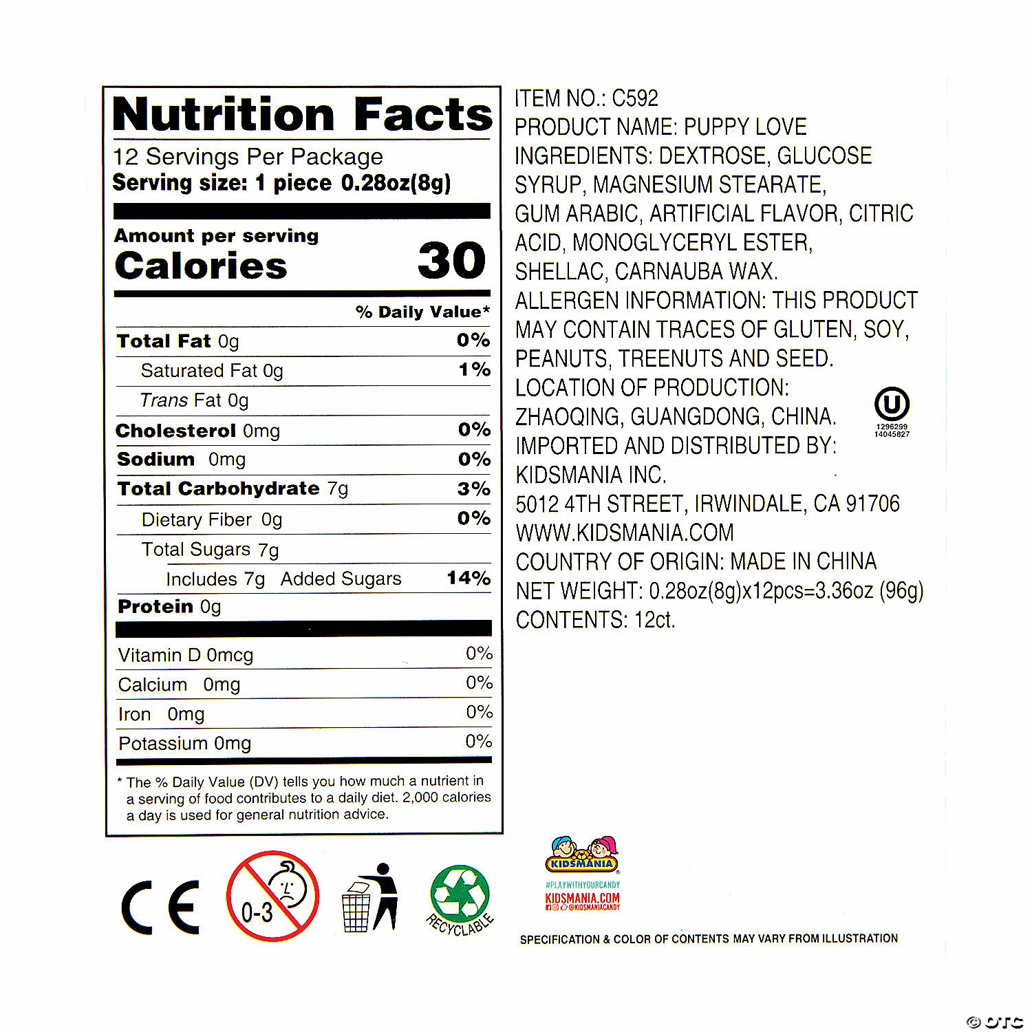 Once kids get their hands on these paw-sitively adorable birthday party favors, they’ll love collecting them all! Each crate comes with a tiny puppy figure and yummy bone-shaped candy treats! Kids will have a blast playing with the pups and devouring the candy. Hand these out as classroom rewards, carnival prizes and other fun giveaways! (12 pcs. per unit) Display box, 4 1/4″ x 7 3/4″ x 4 1/2″. Fat-free. Total wt., 3.36 oz.• Candy is non-returnable. For more information, visit our “Return Policy” page located on our website.• Ingredient, nutrition, allergen and other product information are provided on our Web and Mobile sites for reference purpose only, without warranty or representation as to accuracy. Manufacturers adjust their labeling regularly and are solely responsible for the accuracy of the information. For general questions concerning these items, please contact our customer service at 800-228-0475.