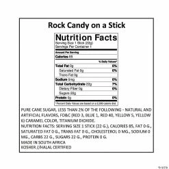 Everyone loves these nostalgic lollipops! No candy buffet will be complete without these sugary treats. From wedding receptions to birthday parties to office picnics, these Rock Candy Pops are a great way to add a unique look and burst of color to any occasion. Watermelon flavor. Each 4 1/2″ sucker is on a 3″ wooden stick. Individually wrapped. Total wt., 9 oz.• Dairy-free.• Fat-free.• Gluten-free.• Candy is non-returnable. For more information, visit our “Return Policy” page located on our website.• Ingredient, nutrition, allergen and other product information are provided on our Web and Mobile sites for reference purpose only, without warranty or representation as to accuracy. Manufacturers adjust their labeling regularly and are solely responsible for the accuracy of the information. For general questions concerning these items, please contact our customer service at 800-228-0475.