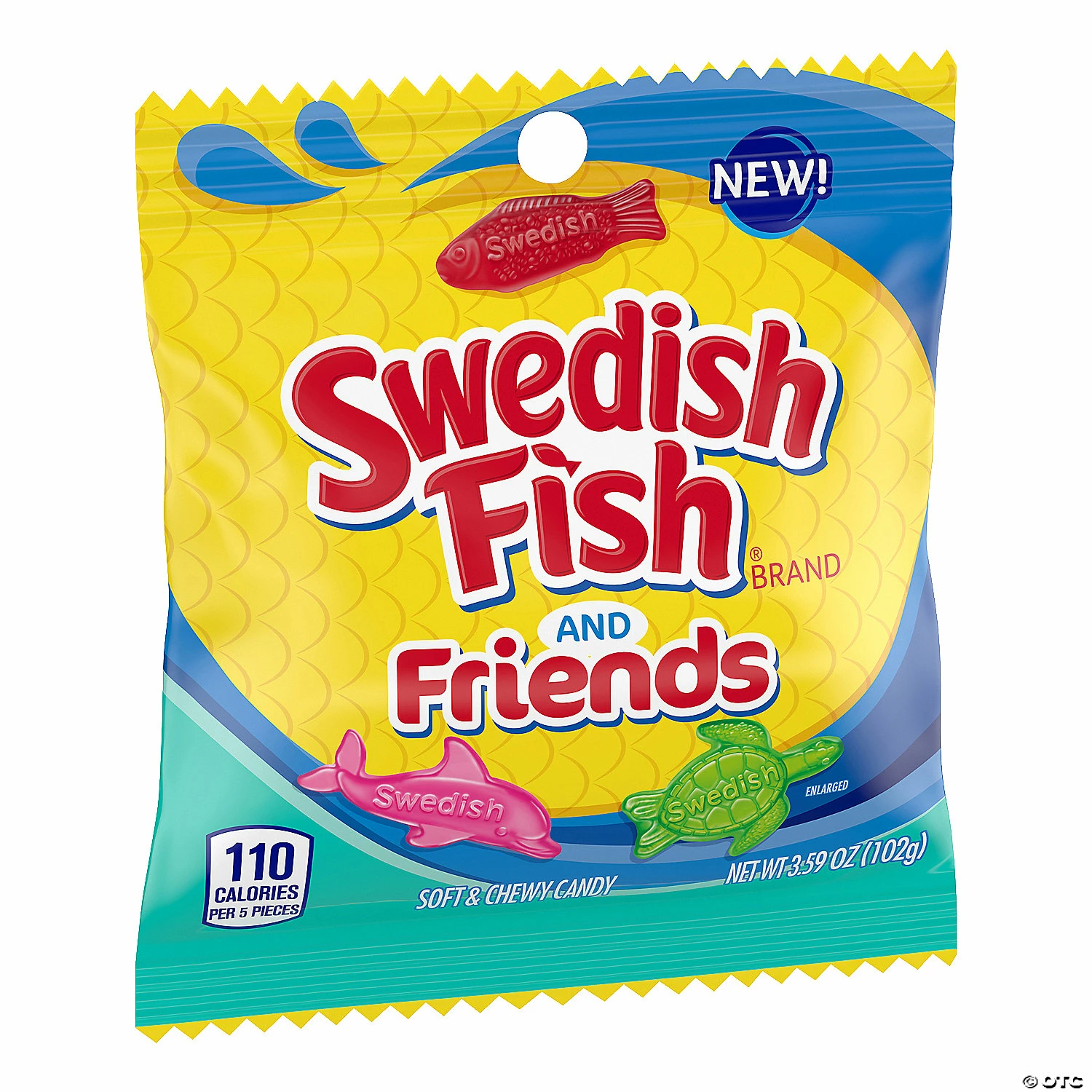 Delicious, fruity and very chewy, these candies are a fantastic addition to any candy bar or party favor bag. Featuring the classic Swedish Fish and two new friends, dolphin and sea turtle, these colorful treats are sure to be a crowd pleaser at any event. Stuff these bags into a fishbowl and set it out as a treat container at a fish or ocean-themed birthday party. Cherry, watermelon and strawberry flavors. (12 pkgs. per unit) Individually packaged. Bag, 5 1/4″ x 6 1/2″. Fat-free. Dairy-free. Nut-free. Total wt., 43.2 oz.• Candy is non-returnable. For more information, visit our “Return Policy” page located on our website. • Ingredient, nutrition, allergen and other product information are provided on our Web and Mobile sites for reference purpose only, without warranty or representation as to accuracy. Manufacturers adjust their labeling regularly and are solely responsible for the accuracy of the information. For general questions concerning these items, please contact our customer service at 800-228-0475.