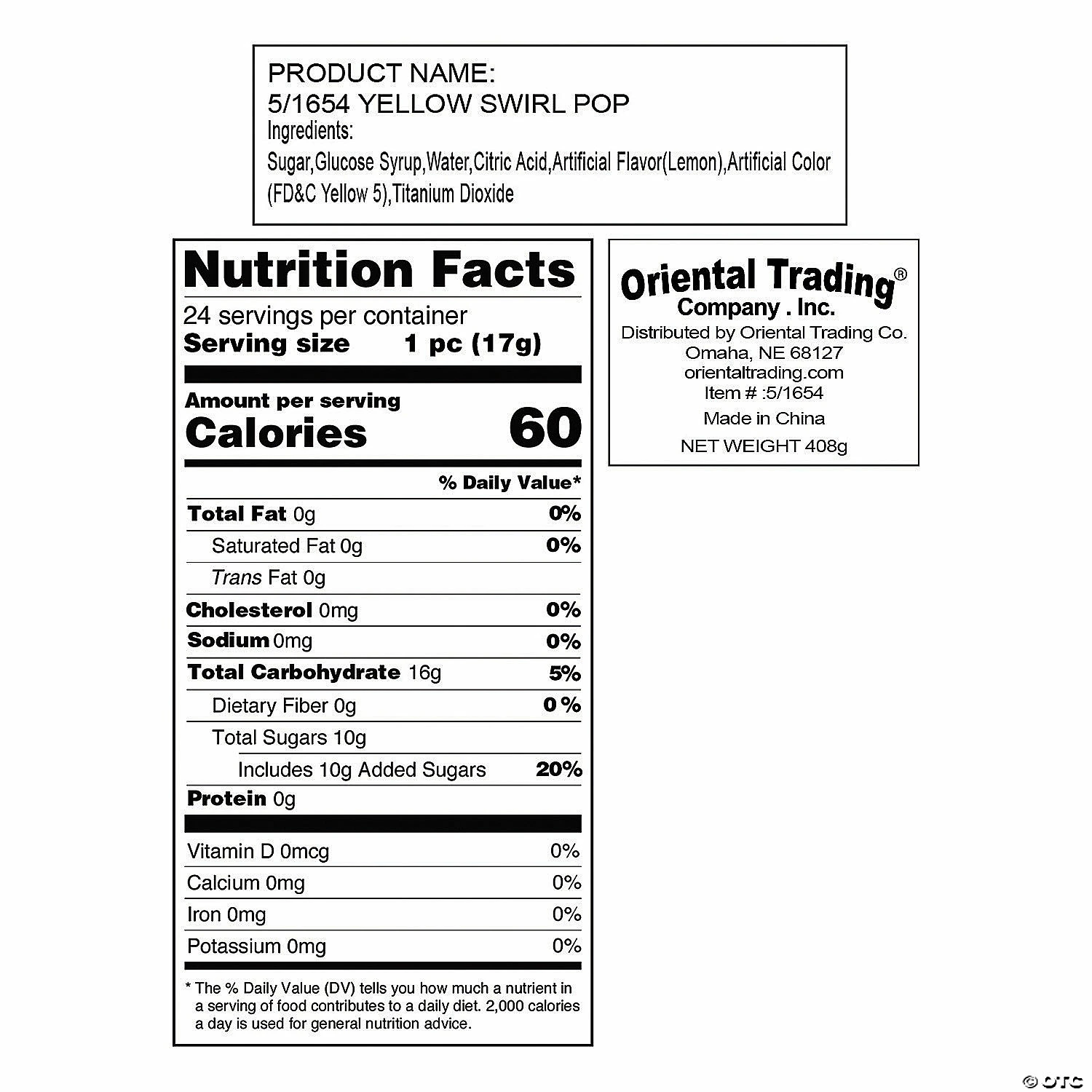 These suckers are a great treat to have around during wedding receptions, birthday parties, carnivals, fundraisers or wherever you need to brighten up your treat table or candy buffet! Sweet, tasty fun for both kids and adults! Lemon flavor. Individually wrapped. Each 2″ pop is on a 4 1/2″ plastic stick. (2 dozen per unit) Total wt., 14 oz. Fat-free. Gluten-free. © OTC.• Candy is non-returnable. For more information, visit our “Return Policy” page located on our website• Ingredient, nutrition, allergen and other product information are provided on our Web and Mobile sites for reference purpose only, without warranty or representation as to accuracy. Manufacturers adjust their labeling regularly and are solely responsible for the accuracy of the information. For general questions concerning these items, please contact our customer service at 800-228-0475